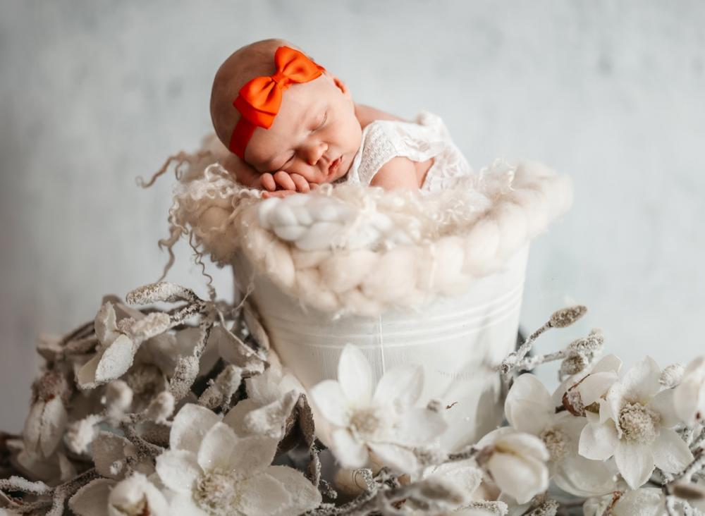 Die beste Zeit für Newborn-Fotos ist in den ersten 5–14 Lebenstagen. In dieser Phase schlafen Babys besonders viel und lassen sich leichter in die schönsten Posen bringen.
